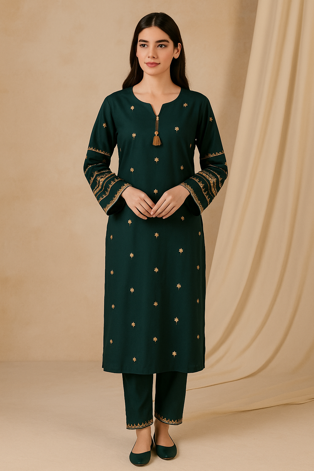 Unveil effortless sophistication with this 2 Piece Embroidered Cotton Lawn Suit (Pret) in a deep emerald green shade. Tailored to perfection and adorned with delicate embroidery, this ready-to-wear lawn suit is a flawless blend of grace and seasonal comfort.