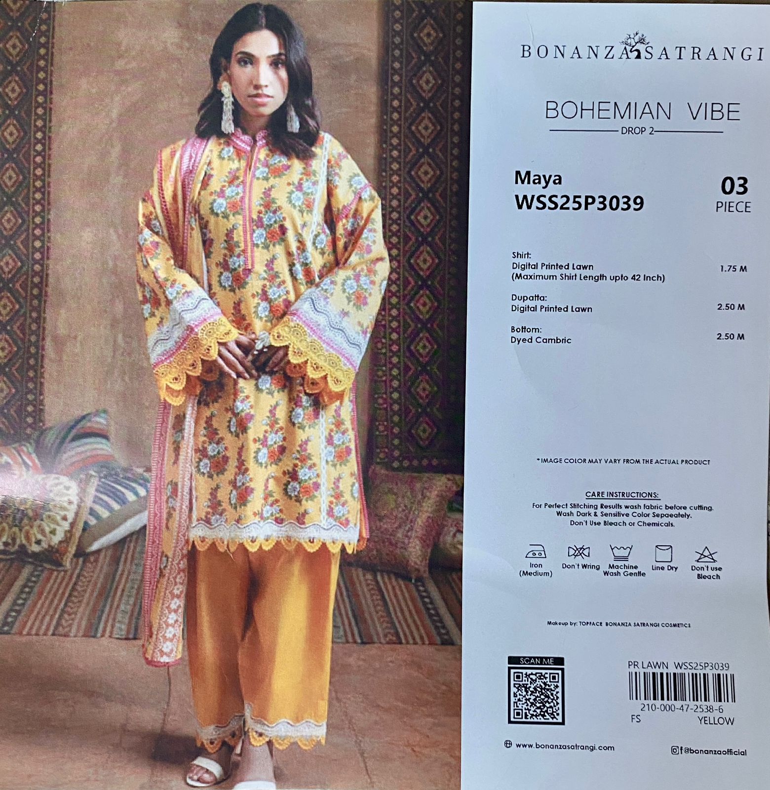 3 Piece Bonanza Satrangi Lawn Suit - Printed (Unstiched)