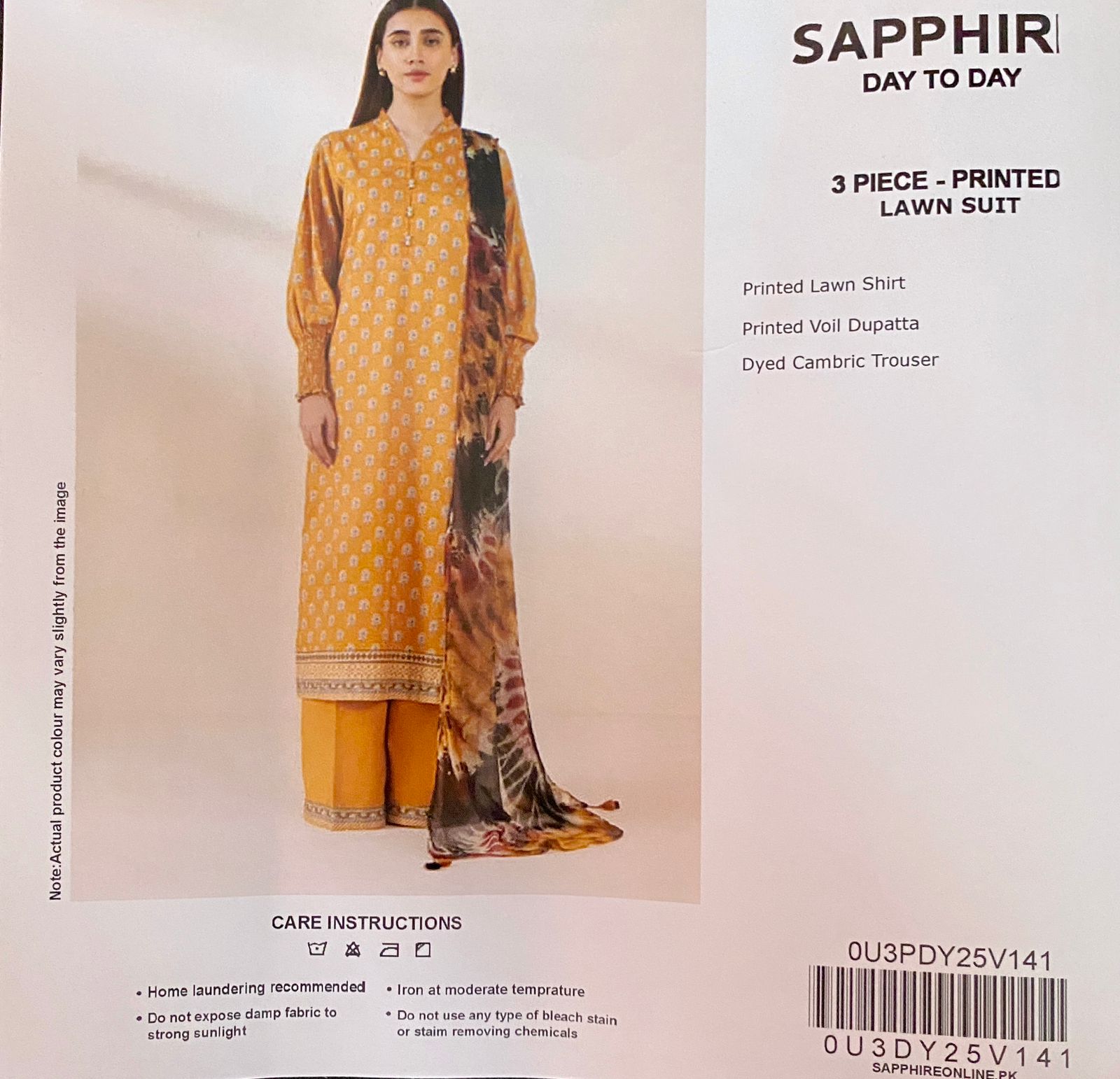 3 Piece Sapphire Lawn Suit - Printed (Unstiched)