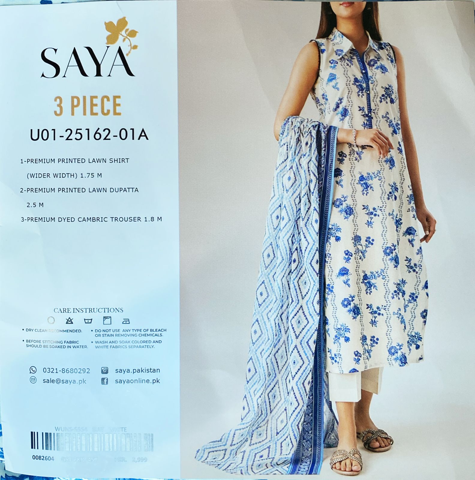 3 Piece SAYA Lawn Suit - Printed (Unstitched)